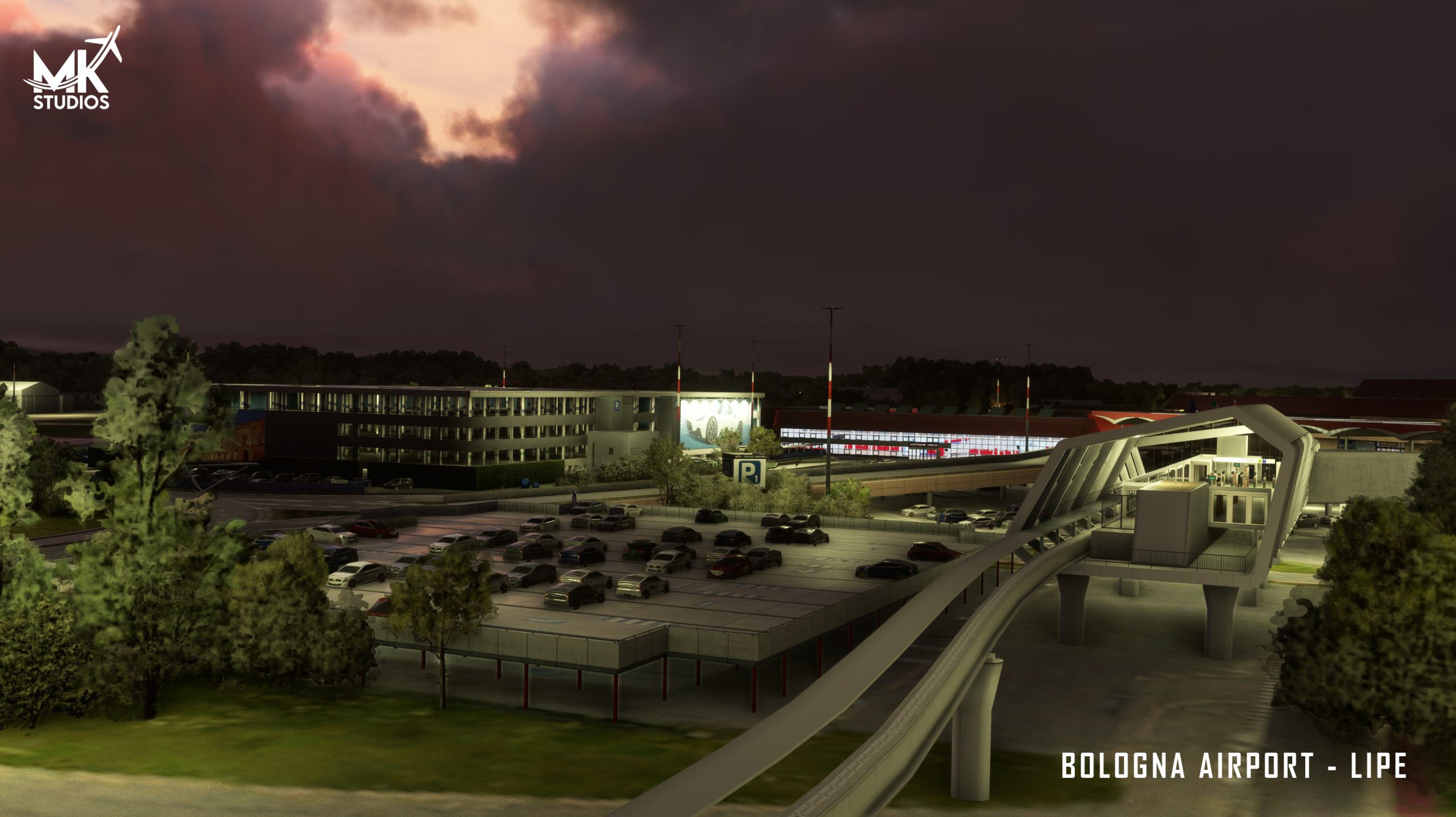 High-fidelity rendition of Bologna Airport built from the ground up